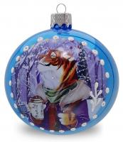 —Елочный шар "Белый тигр" голубой